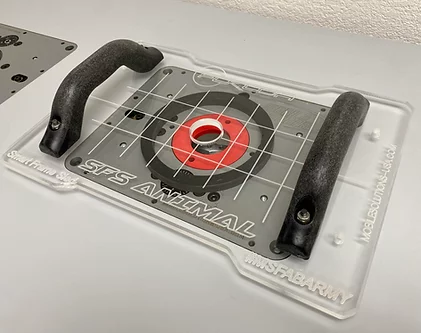 - The Fukuda Router Safety Shield is made of sturdy 1/2″ optically clear acrylic and has high-impact, type 1 PVC plastic handles